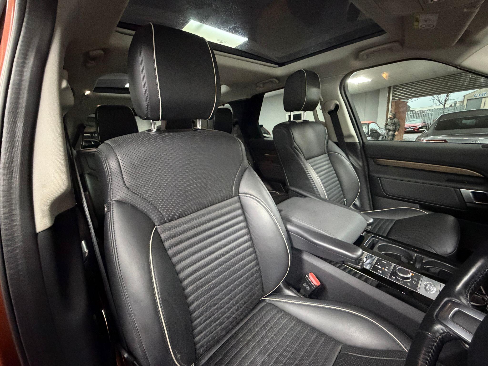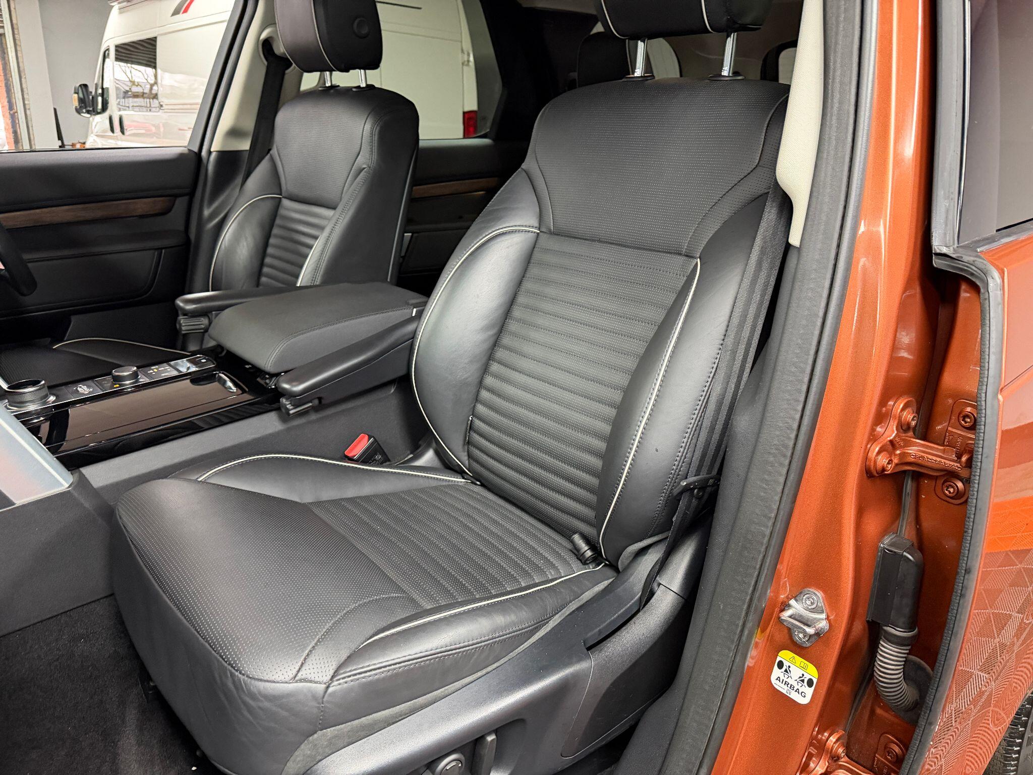 Finished in Namib Orange with Windsor black leather upholstery with grey piping with a gloss black/dark wood fascia trim and inlays with leather facings.